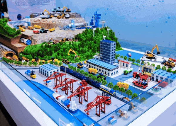 位于展馆“C位”的全系列产品工况沙盘,覆盖铲运、矿用、隧道等多场景产品矩阵,实现产品可视化、工况场景化,为现场客商全方位呈现全链条系统解决方案,吸引各级领导、客商、媒体等驻足。