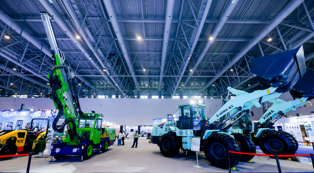 同期展出的厦工中铁DJ系列凿岩台车,是地下隧道施工核心装备之一,适配多种复杂地质工况。