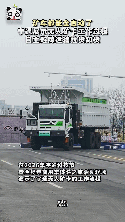 环球网则聚焦科技节现场的全场景动态演示,用最直观的车辆测试展示了宇通无人驾驶矿卡和宇通新能源重卡的科技实力,并称其是宇通睿控E+智电融合的科技成果。
