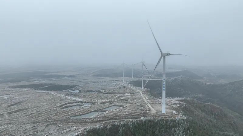 在黔南腹地,中广核龙里风电场坐落于龙山镇草原片区海拔1500米至1700米的高寒地带。这里是贵州的“风之走廊”,冬季的寒流自北方长驱直入,在此与高原的湿气交锋,催生出持续性的低温凝冻天气。每年冬季,山间草木尽披银甲,道路覆冰,这片风机森林要经历数日的天气考验,保障185台风机在极端天气下持续稳定运行,成为一场必须打赢的“能源保卫战”。