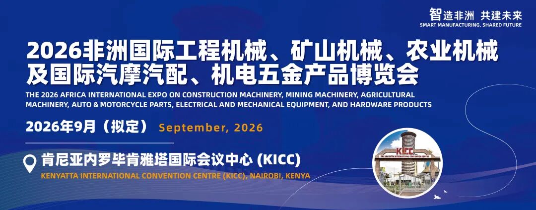在非洲工业化浪潮与基础设施建设暴发的历史性机遇面前,一场汇聚全球产业力量、聚焦非洲未来发展的国际级行业盛会——“2026非洲国际工程机械、矿山机械、农业机械及国际汽摩汽配、机电五金产品博览会”,拟定于2026年9月在肯尼亚内罗毕肯雅塔国际会议中心(KICC) 隆重举行!