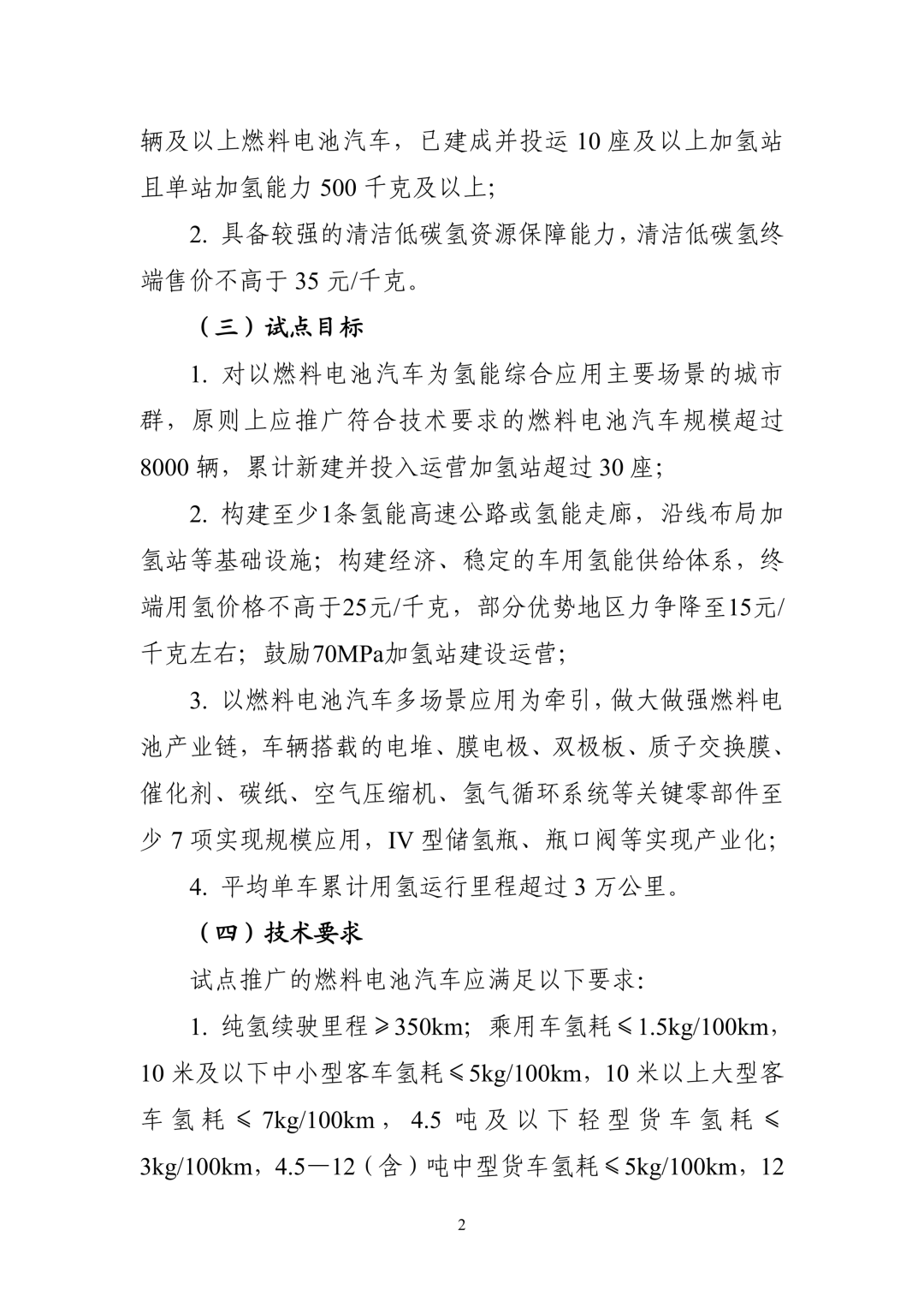 (一)燃料电池汽车。以建设氢能高速公路、氢能走廊为主线,重点推动中重型、中远途运输和冷链物流等商用车规模化应用,鼓励开展公交客运、城市物流、城市环卫、渣土运输等车辆应用,探索公务车、网约车等乘用车应用。