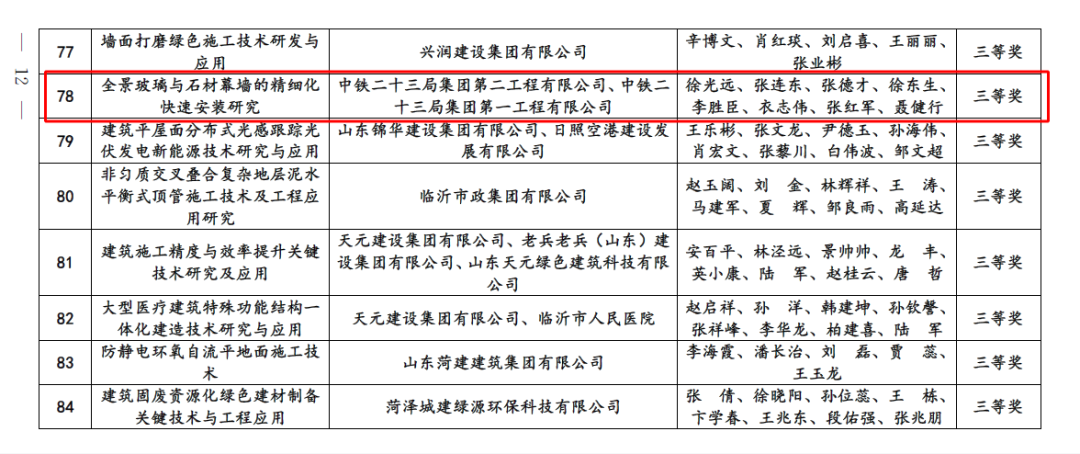 中铁二十三局一公司近日,“2025年度山东省建设科技与教育协会建设科学技术奖”授奖名单正式公布,公司凭借《城区深淤泥、密砂卵石区域配水工程引水管道顶管施工技术研究》《全景玻璃与石材幕墙的精细化快速安装研究》两项核心技术成果脱颖而出,分获科学进步奖一等奖、三等奖,充分彰显企业在建设科技研发与工程应用领域的硬核创新实力。