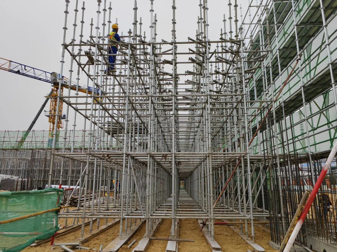 以“细”施策,细化过程管控 将精细化管理贯穿脚手架搭设全流程,培训环节,细致讲解脚手架的材料标准、安装流程、验收要点及安全注意事项,明确立杆间距、水平杆步距等每一项关键参数;材料验收环节,安排专人对进场的立杆、横杆、连接盘等核心材料逐一核查,细化核查壁厚、尺寸精度等各项指标,不放过任何细节缺陷;基础准备上,细致做好场地平整、专用垫板铺设工作,确保脚手架基础牢固,为后续规范安装奠定坚实基础。
