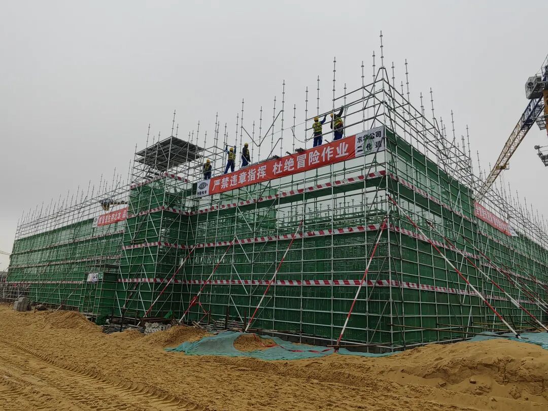 春潮催人进,施工正酣时。一直以来,榆林化学严格遵循“严、细、控”项目建设总要求,全力以赴推进二期一阶段项目建设进度。中央控制楼作为该项目生产运营的“大脑中枢”,承担着整个项目的控制、监测与调度功能,其施工安全与质量直接关系到项目后续稳定运营。而脚手架搭设工程作为中央控制楼施工建设的核心配套设施,目前正按照施工计划稳步推进,并完成局部区域搭设任务。