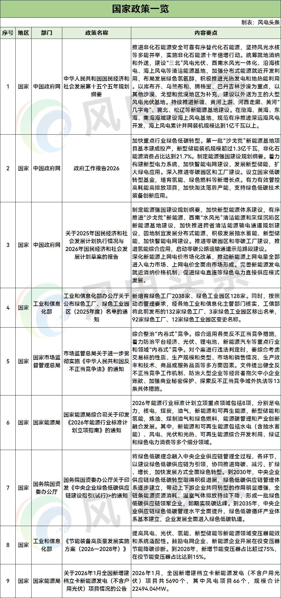 22条!2026年2月风电政策汇总:风光基地、“136号文”相关文件、分散式风电、海上风电、绿电直连等相关政策32条!2026年1月风电政策汇总:驭风行动、风电竞配/核准/配储、绿电直连、零碳园区等相关政策