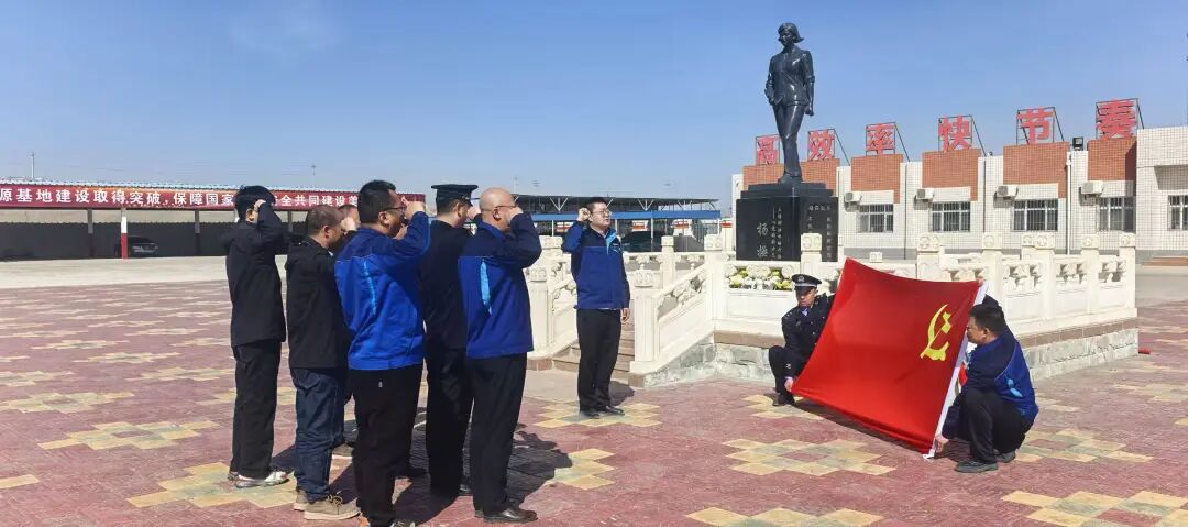 缅怀先烈,赓续红色血脉 杨拯陆烈士是爱国将领杨虎城将军的女儿,也是新中国第一批地质专业大学生。1958年,年仅22岁的她在带队进行石油地质勘探时遭遇寒流袭击,不幸牺牲,用青春和生命谱写了一曲“以身许国”的壮丽凯歌。 在庄严肃穆的烈士纪念铜像前,项目部全体党员整齐列队,怀着无比崇敬的心情向烈士敬献鲜花、脱帽默哀。面对鲜红的党旗,大家高举右拳,重温入党誓词。铿锵有力的誓言在戈壁滩上回荡,不仅是对革命先烈的深切缅怀,更是对入党初心的再一次庄严承诺。