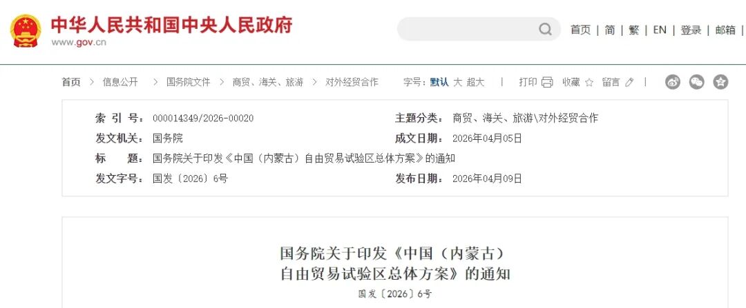 国务院关于印发《中国(内蒙古) 自由贸易试验区总体方案》的通知