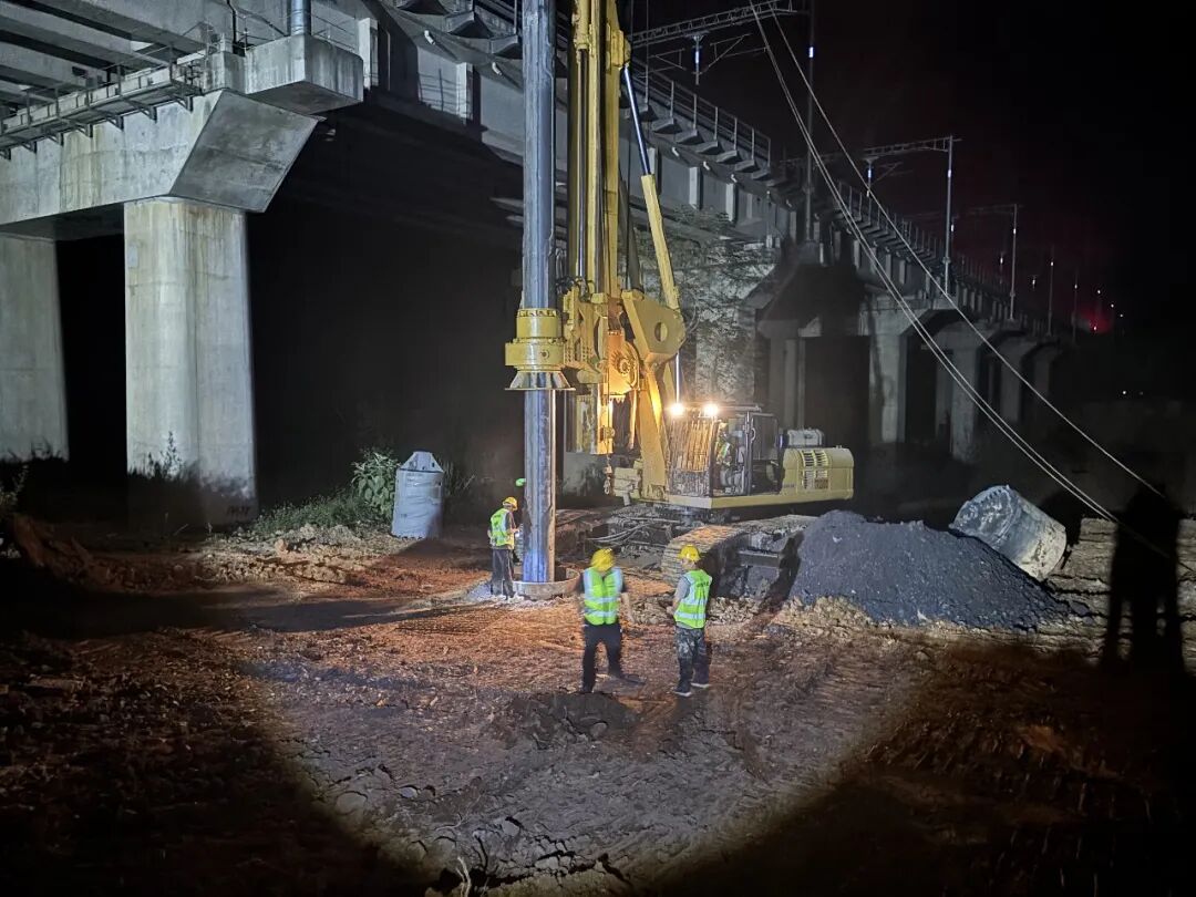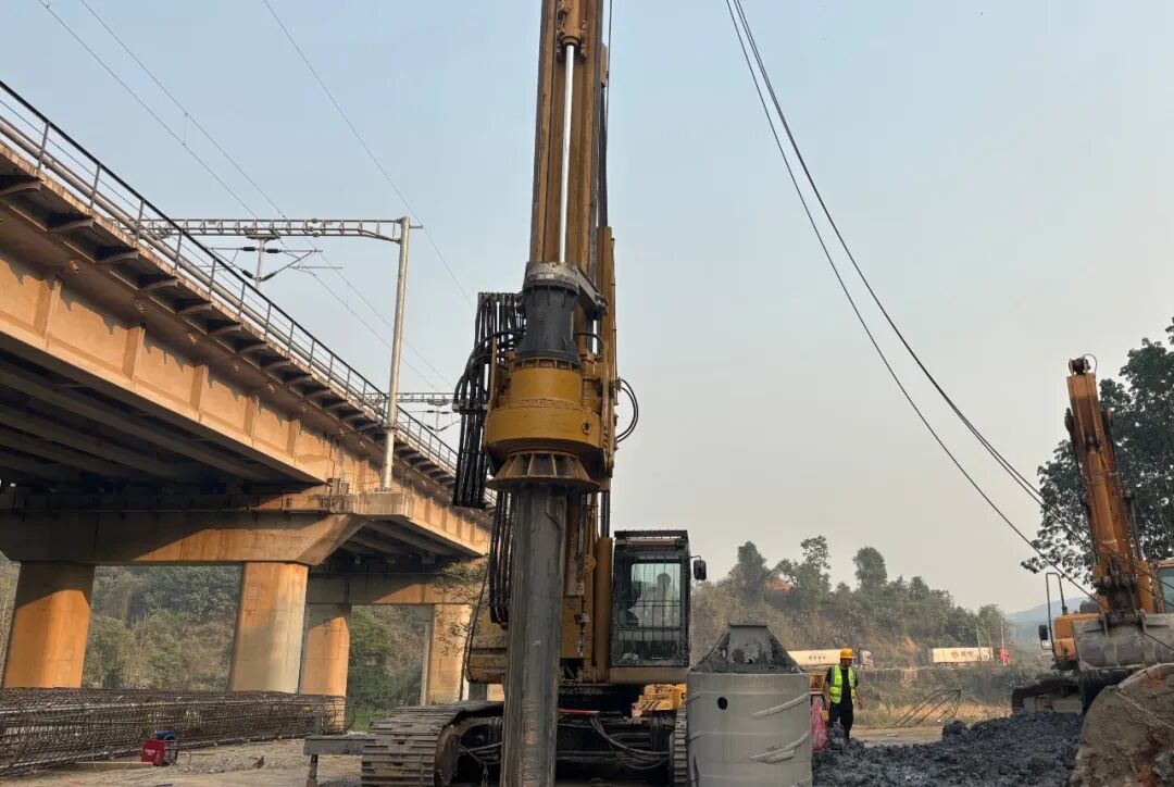 纳堆大桥是磨万铁路运输补强项目的关键控制性工程,其施工进度直接影响项目整体工期目标。项目建设团队紧盯节点目标,倒排施工计划,全面开展施工准备与技术交底工作。技术人员结合老挝当地地质条件与既有线运营要求,反复优化施工方案,明确成孔、钢筋笼安装、混凝土浇筑等关键环节的管控标准;安全管理部门紧盯临近营业线施工关键环节,聚焦机械作业管控与现场行车安全,全面组织全员安全培训,从严落实施工防护各项措施,严密筑牢安全防护屏障,为项目首桩顺利开钻提供坚实安全保障。 开钻当日,施工人员严格按照设计图纸及规范要求,精准把控钻孔定位、垂直度及孔径等核心参数,一丝不苟地进行作业。项目管理人员全程旁站监督,实时跟进施工进度,及时协调解决现场出现的各类细节问题,确保首桩施工安全、高效、有序推进。