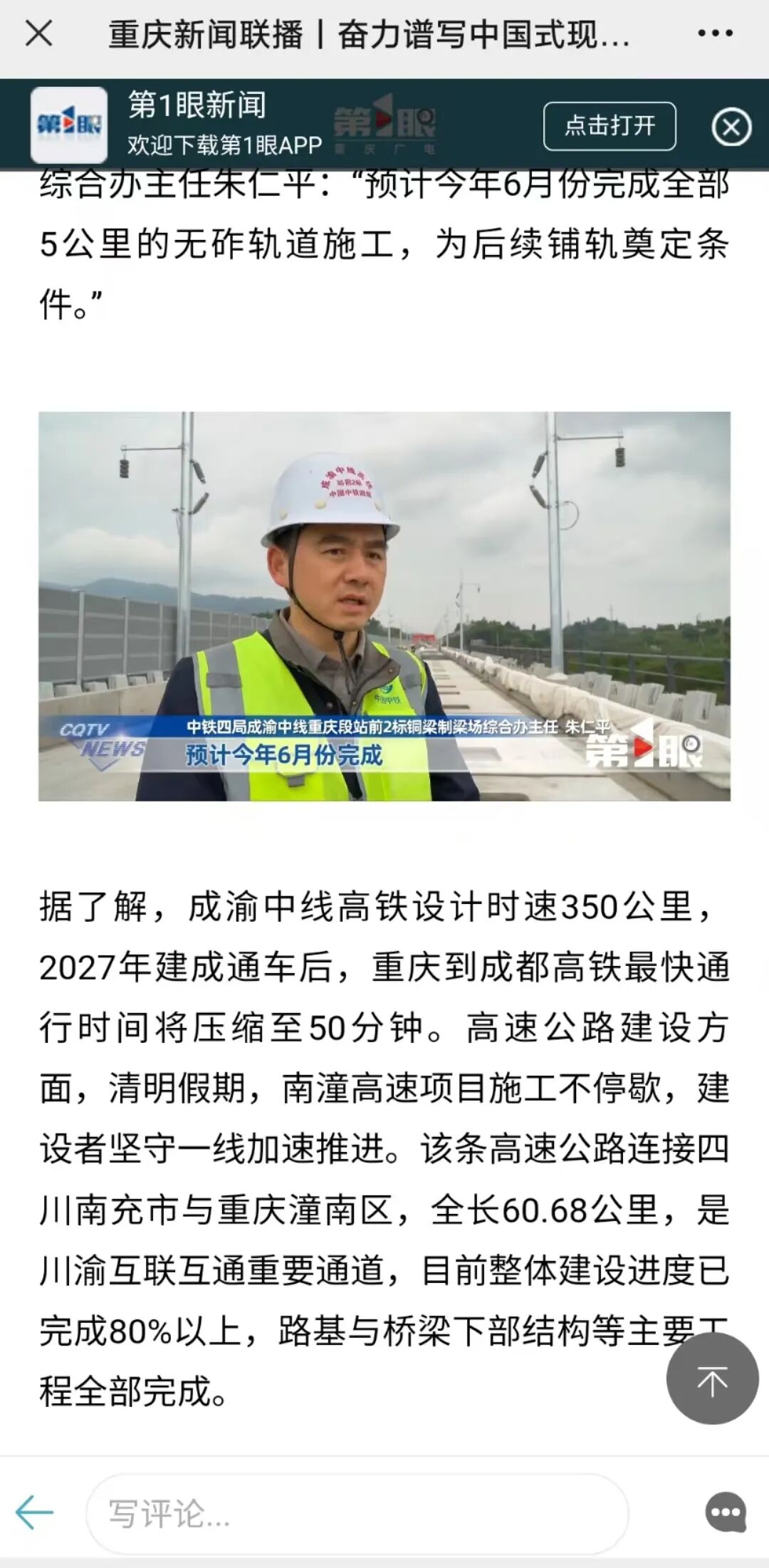 4月6日,重庆卫视:重庆新闻联播丨奋力谱写中国式现代化重庆篇章 · 春忙正当时 我市重点工程建设热潮涌动。(成渝中线重庆段站前2标项目经理部)