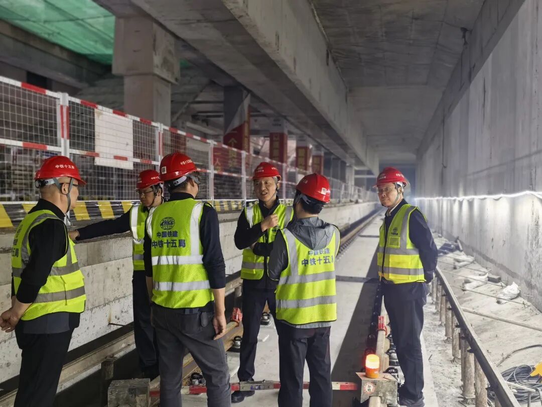 调研期间,任化庆一行直奔骡马市站铺轨现场查看,该站是成都地铁首座四线换乘枢纽车站,施工难度大、安全要求高。他详细了解了现场铺轨施工工艺、进度、质量、安全管控、作业人员在岗,以及铺轨施工中的重点难点推进等情况。