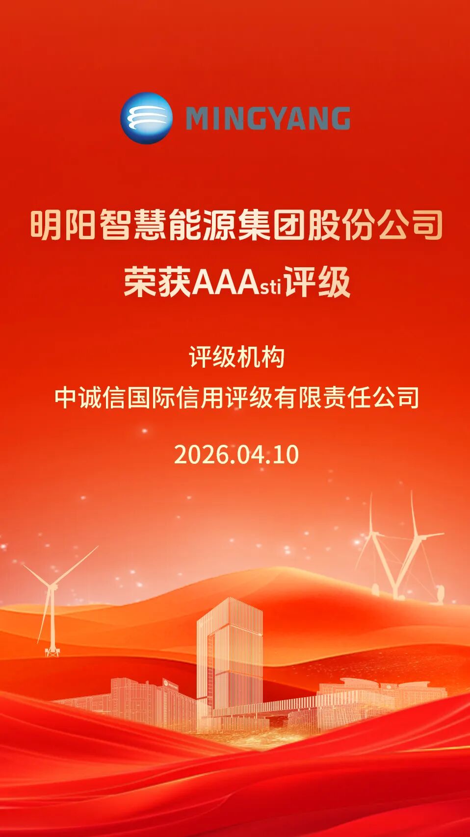 4月10日,中诚信国际首次授予明阳智慧能源集团股份公司(以下简称“明阳智能”)AAAsti主体信用评级,评级展望为稳定。这是明阳智能首次跨入国内最高信用等级行列,同时也是风电行业首家获得带科创标AAA评级的民营企业。