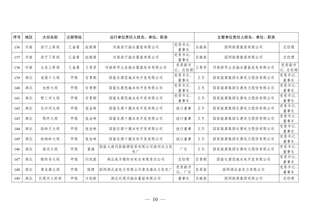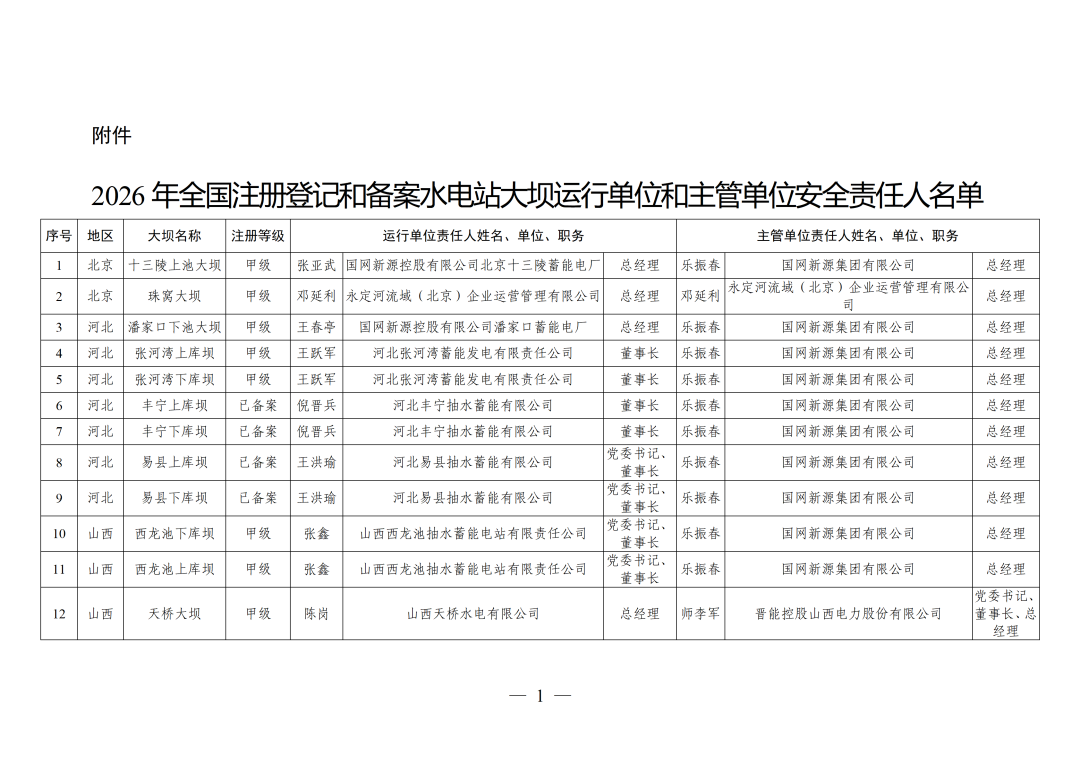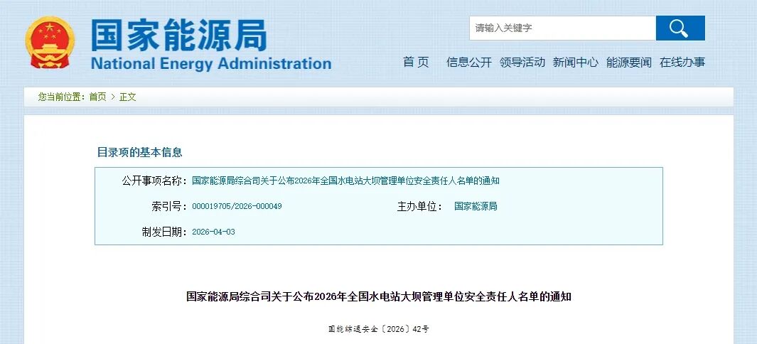 国家能源局综合司关于公布2026年全国水电站大坝管理单位安全责任人名单的通知