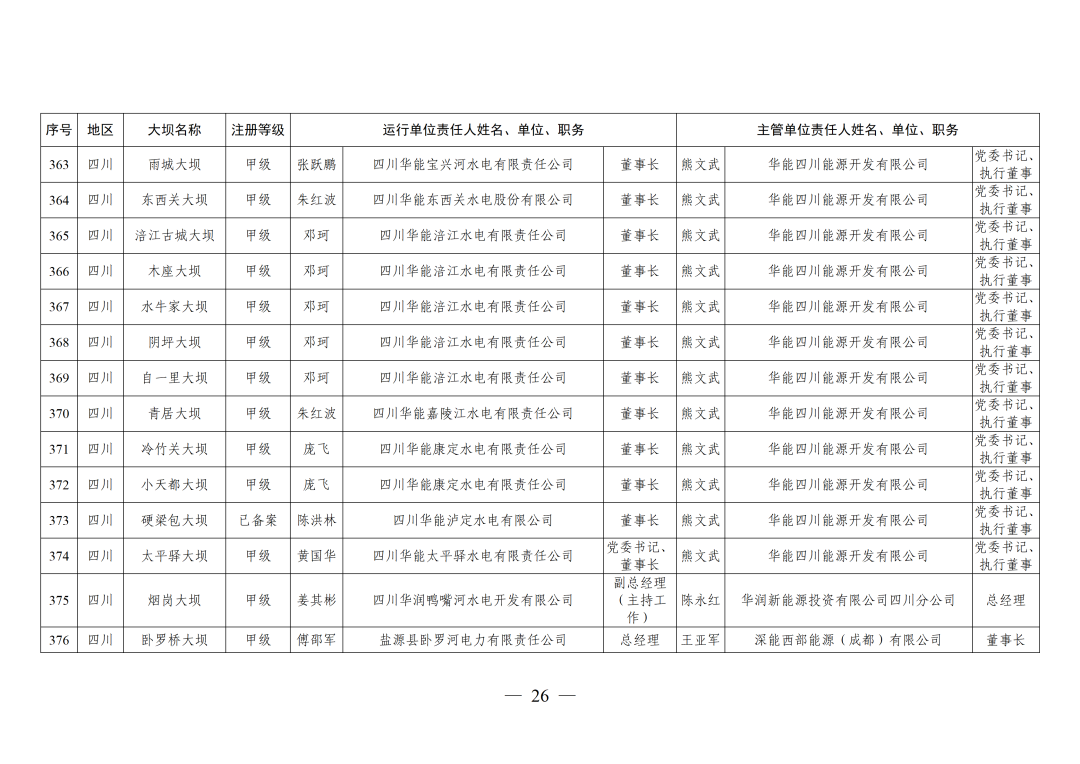 附件:2026年全国注册登记和备案水电站大坝运行单位和主管单位安全责任人名单.docx