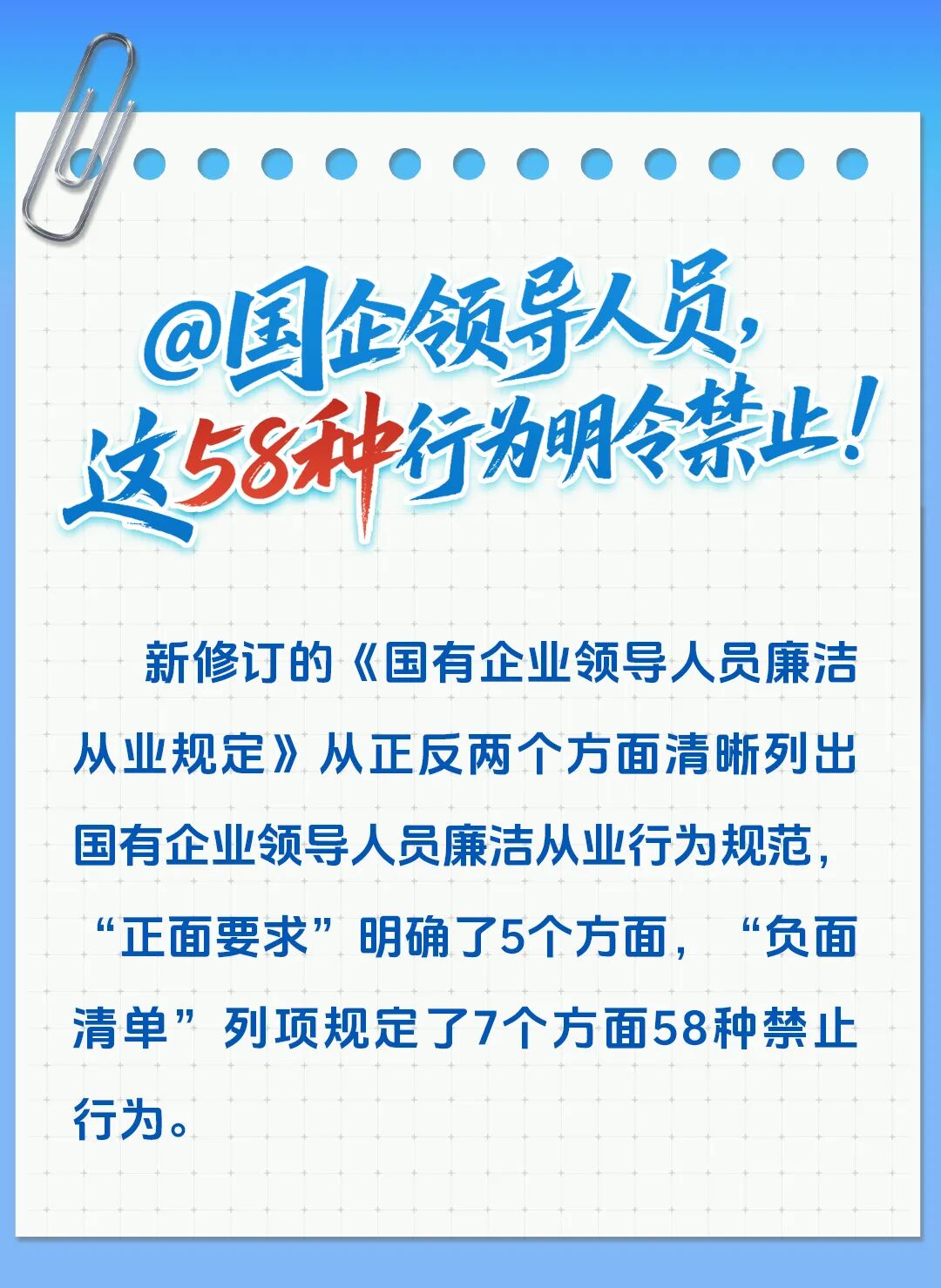 导读「倡廉 促廉 践廉」@国企领导人员,这58种行为明令禁止!