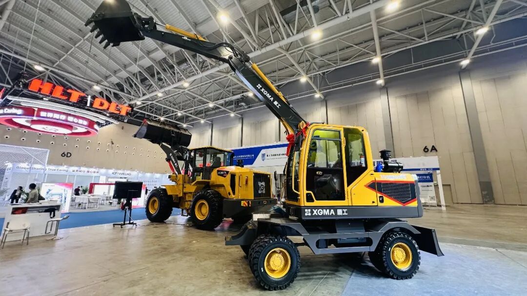 XG957KP 重载装载机动力强劲、结实耐用,强化耐磨结构设计,适配重负荷粉料转运; XG8085WH 轮式挖掘机转场快速、动作流畅,一机多用适配多种基建场景。