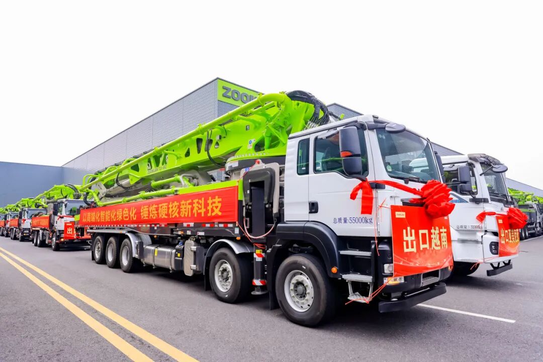 混凝土机械也在期间批量奔赴全球。这些中国智造的精品设备,有的将跨越重洋,远赴德国、澳大利亚、阿联酋等全球23国市场,在国际舞台闪耀光芒;有的将奔赴祖国各地,助力国家重点工程建设,为“中国建造”注入强劲动力。